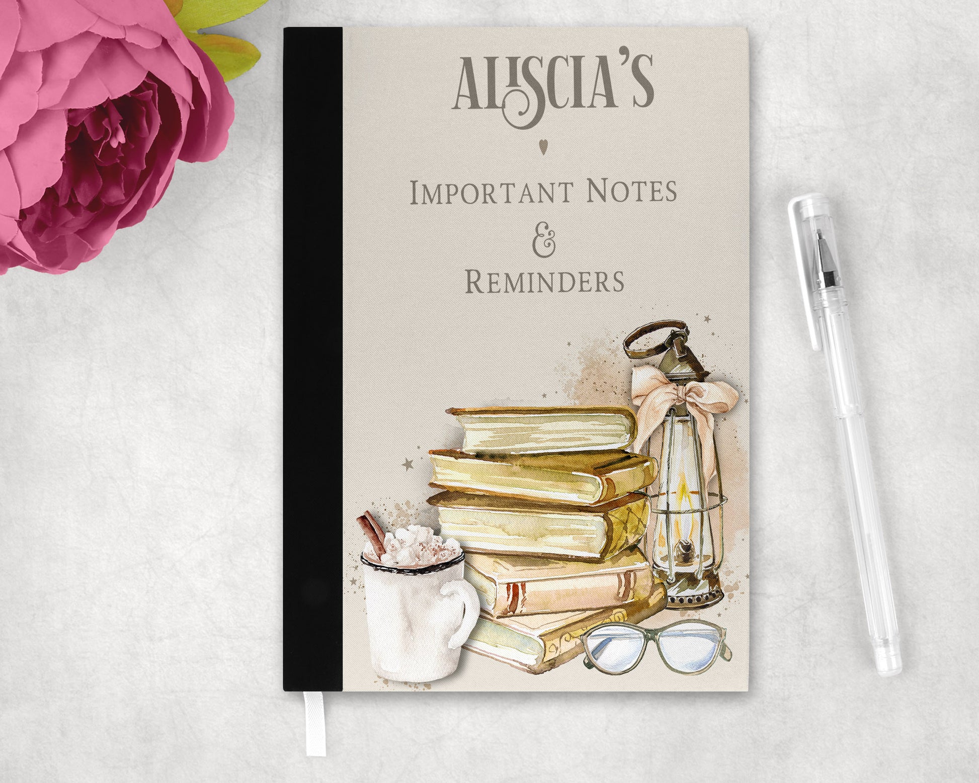 Capture every significant thought with the important notes and reminders coffee personalised notebook from Kim's Gift Shack. This A5 fabric notebook, personalised with the name of your choice, features an image on both the front and back covers, boasting approximately 96 lined pages for all your essential notes.